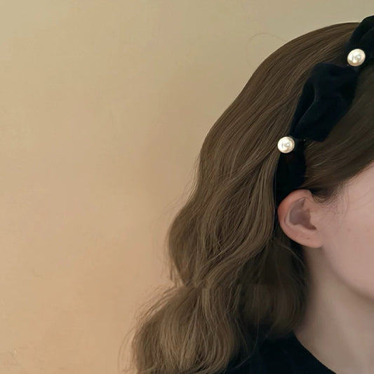 Black Velvet and Pearl Headband ブラックベルベットアンドパールカチューシャ R02073