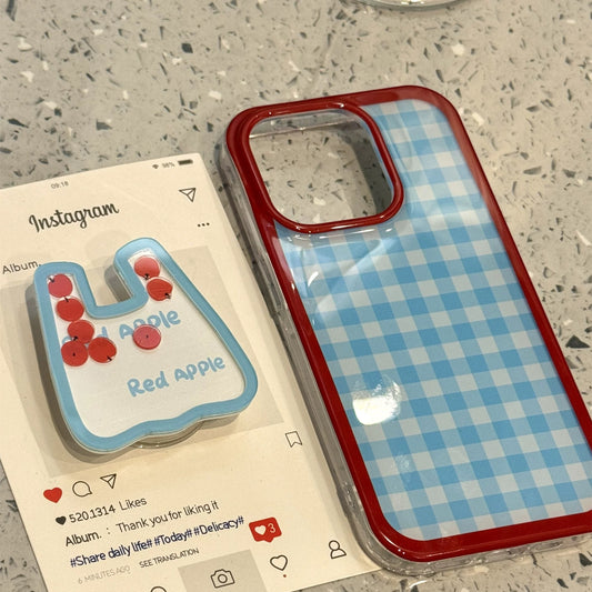 Cute Apple Bag Stand iPhone case かわいいリンゴバッグスタンドスマホケース R02006