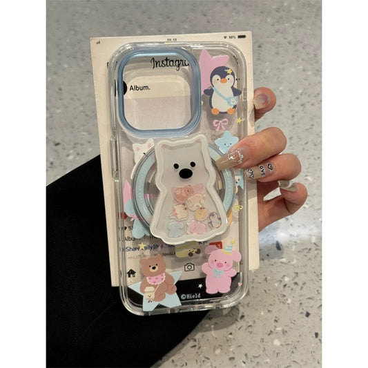 Cute Stuffed Toy Stand iPhone case かわいい流れるぬいぐるみスタンドスマホケース R02007