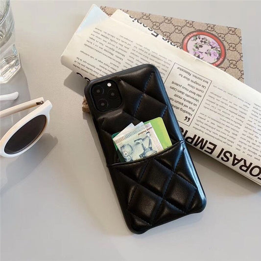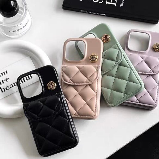 Check iPhone Case with Card Pocket & Shoulder Chain チェックスマホケースカードポケットとショルダーチェーン付き