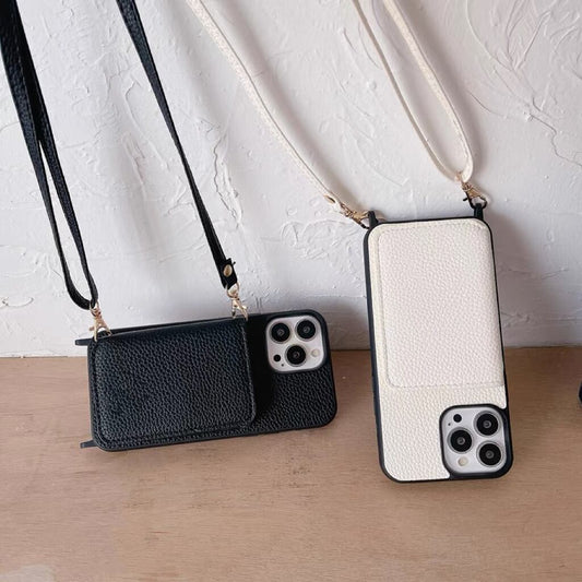 Leather Shoulder iPhone case with Two Fold Card Holder レザーショルダースマホケースと二つ折りカードホルダー R01432