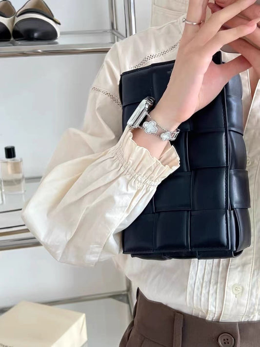 Silver×White Shining Clover Apple Watch Band キラキラクローバーApple Watchバンド R01248