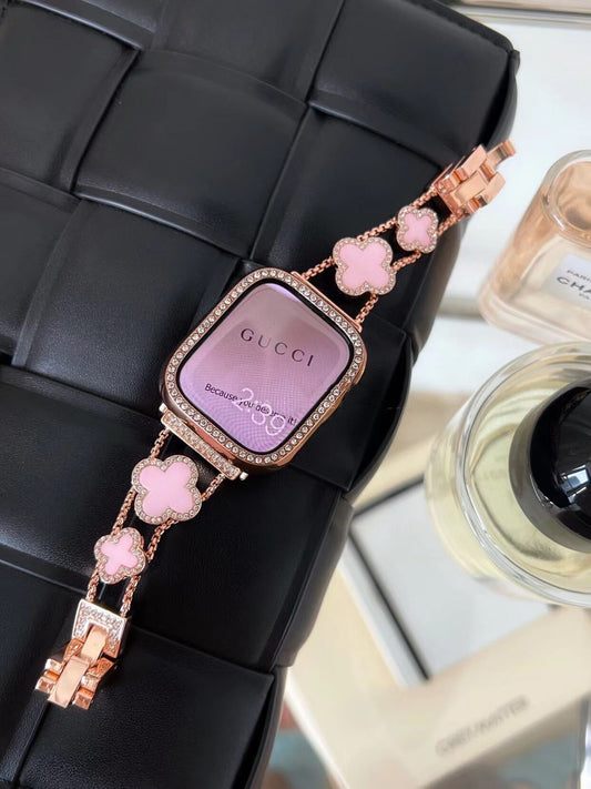 Rose Gold×Pink Shining Clover Apple Watch Band キラキラクローバーApple Watchバンド R01250